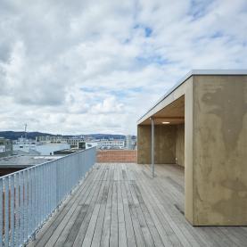 Im zweiten Obergeschoss wurden grosszügige und lichtdurchflutete Büroräumlichkeiten geschaffen, die eine offene und kommunikative Arbeitsatmosphäre fördern. Ergänzend dazu entstanden flexible Gewerberäume, eine Hauswartwohnung sowie ein multifunktionaler Kulturraum, der das Gebäude über seine eigentliche Nutzung hinaus zu einem lebendigen Treffpunkt macht.