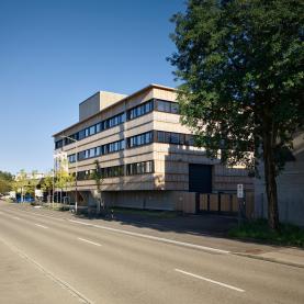 Bedingt durch das kontinuierliche Wachstum des Unternehmens wurde der Ersatz der bestehenden Lagerhallen notwendig. An der Ausfallstrasse von Winterthur nach Osten entstand ein markanter Neubau, der bereits von weitem sichtbar ist und als architektonisches Zeichen für zeitgemässen Holzbau steht.