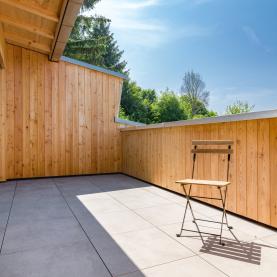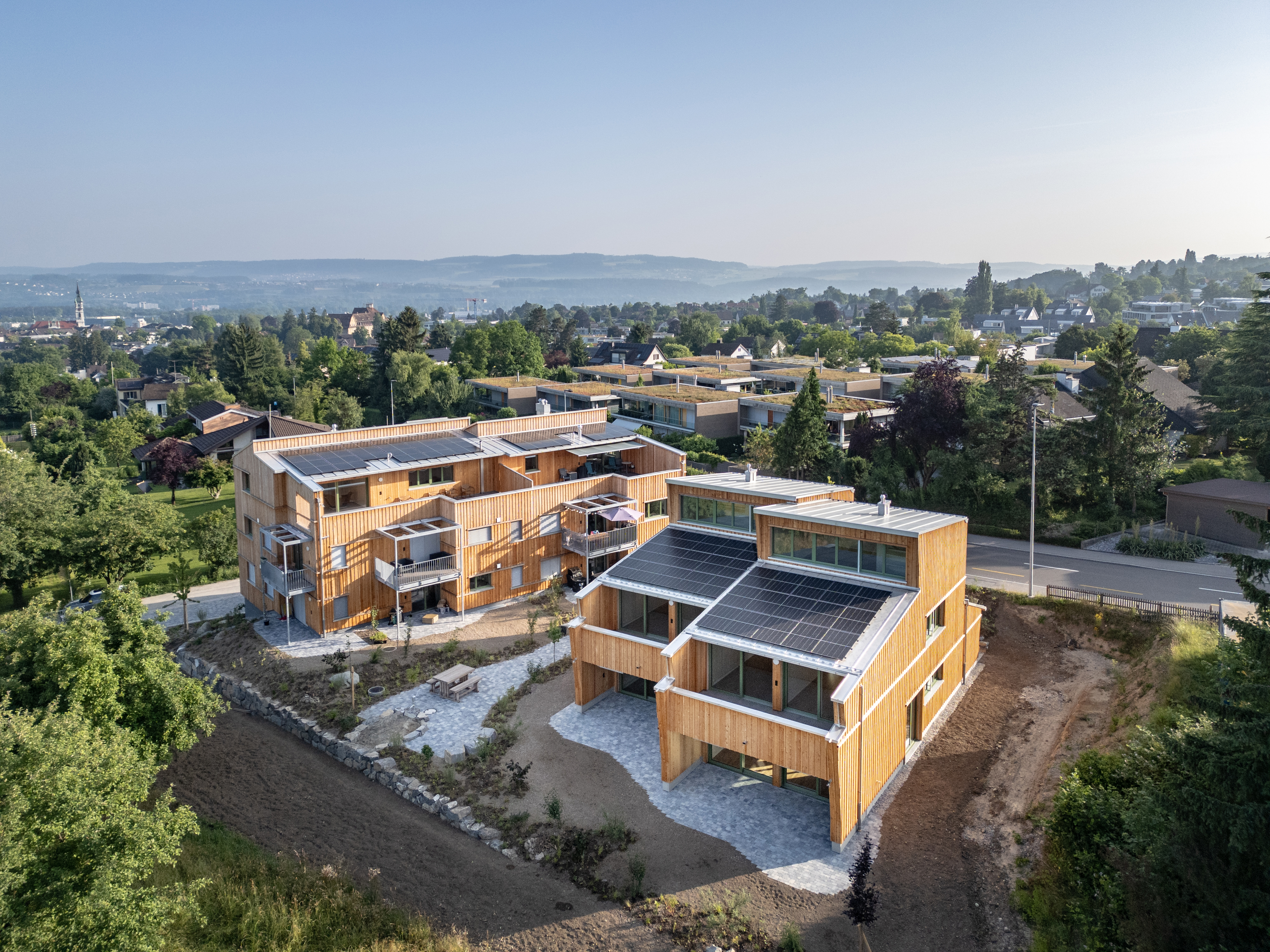 Unter dem Leitgedanken „Weiterbauen heisst weiterdenken und nachhaltig handeln“ wurde das Mehrfamilienhaus energetisch und gestalterisch saniert. Das Walmdach wich einem neuen Pultdach, wodurch im Attikageschoss zwei moderne Wohnungen mit grosszügigen Terrassen entstanden.