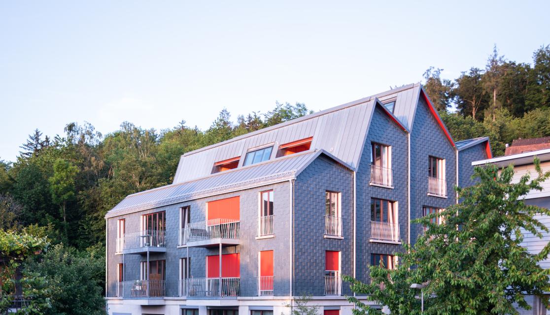 Wohnhaus am Waldrand mit aufgefächertem Dach
